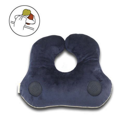 Relaxso EZSLEEP Face Down Speakerpillow, Silky Plush Navy Description:Our face down ergonomic speakerpillow is a revolutionary new travel pillow designed to eliminate the neck strain associated with U-shaped travel pillows when trying to sleep in a seated position. For most people, it is very difficult to maintain a correct posture while sitting in an office chair and working for long hours at a desk or in front of a computer. It intended to be used in any situtation where it is necessary for a person to sleep or rest with either the torso elevated.It also created to keep your face in a comfy and relaxing position with soft music during a comforting massage or spa treatment. Specially enables you to breathe smoothly while sleeping on your stomach.